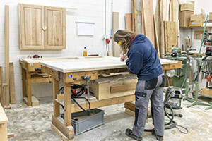 Unser Schreinerei-Team produziert Möbel nach Ihren Wünschen. Im Vordergrund steht dabei die Massivholzverarbeitung. Die angehenden Schreiner/innen EFZ und Schreinerpraktiker/innen EBA stellen zudem Bauteile wie beispielsweise Küchenschränke her und montieren diese auf der Baustelle. Sie beherrschen die Techniken der Holzbearbeitung und sind mit den entsprechenden Maschinen bestens vertraut.