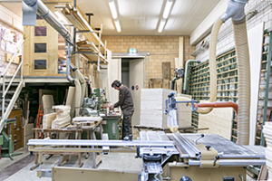 - Die Verarbeitung von Massivholz steht im Vordergrund